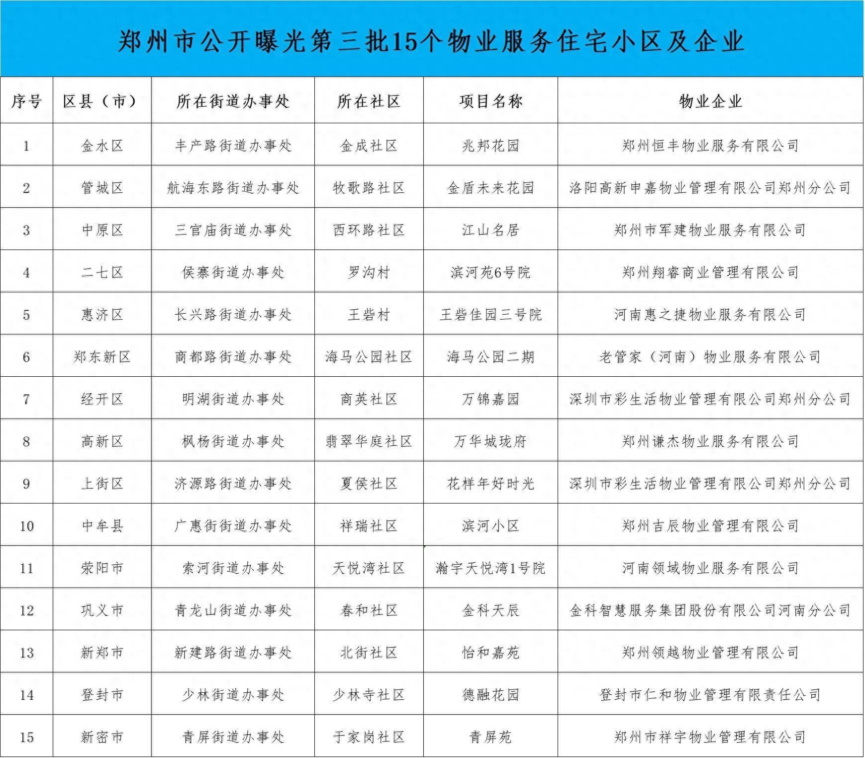 附:郑州市公开曝光第三批物业服务住宅小区及企业名单(15个)河南股票配资
